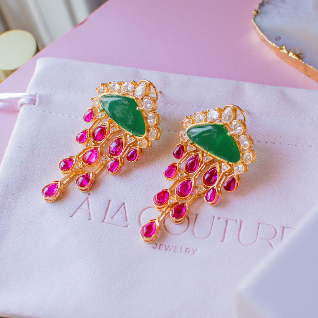 Custom Order - Parineeta Set W/ Emerald Green Stones & Teekah