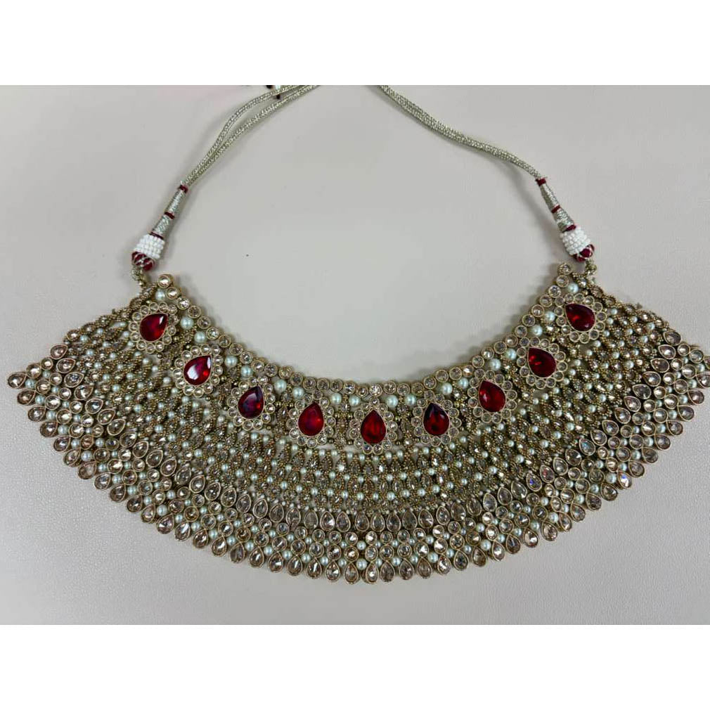 Elevate your elegance with this stunning set featuring champagne and ruby stones.