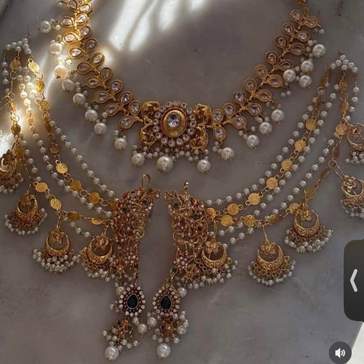 The listing includes a necklace, a pair of earrings with ear-chains.