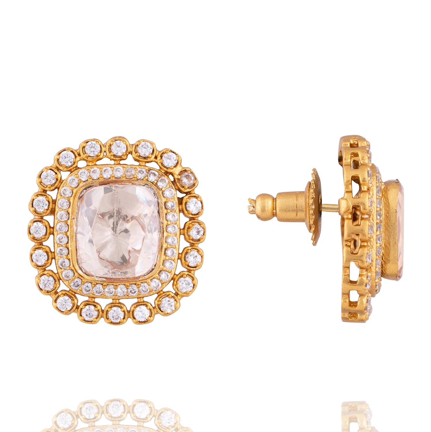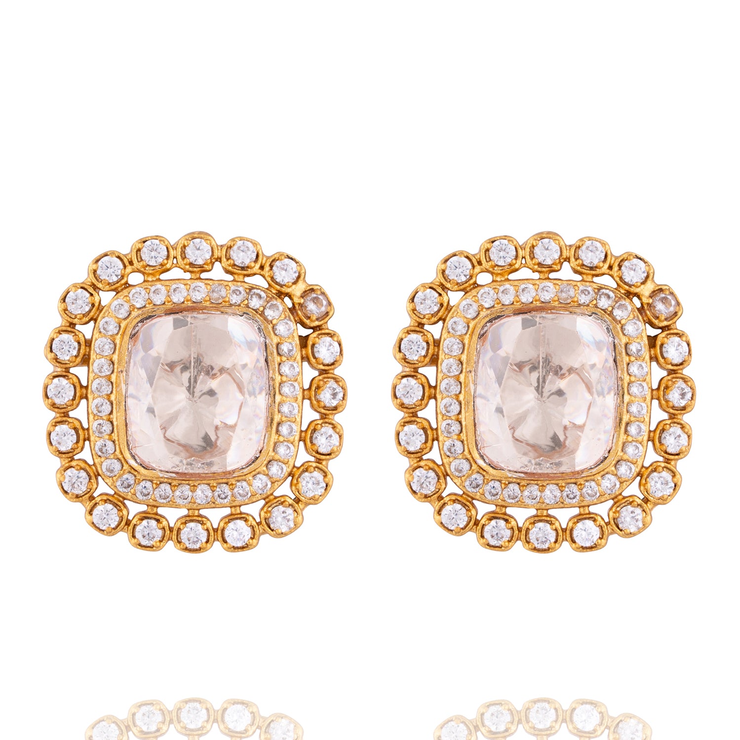 These CZ-studded earrings feature radiant cushion-cut stones framed by double halos of sparkle. Approximate earrings length is 0.8".