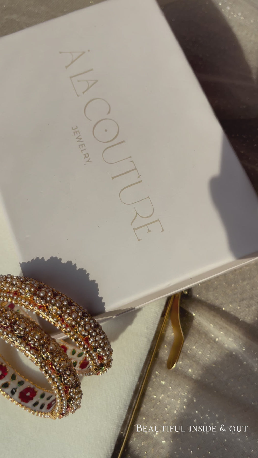 Exuding old-world charm, these bangles are encircled with pearl moti. Available in various sizes.