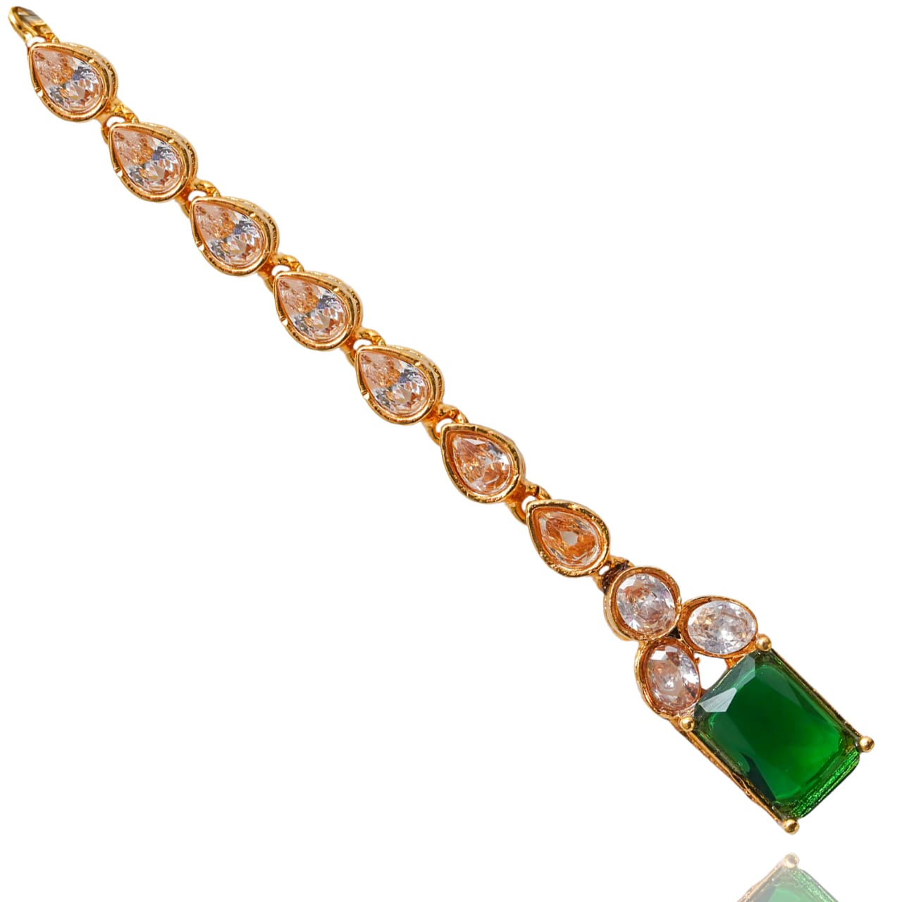 The set includes a choker, a necklace, a maang teekah and a pair of earrings. Approximate earrings length is.