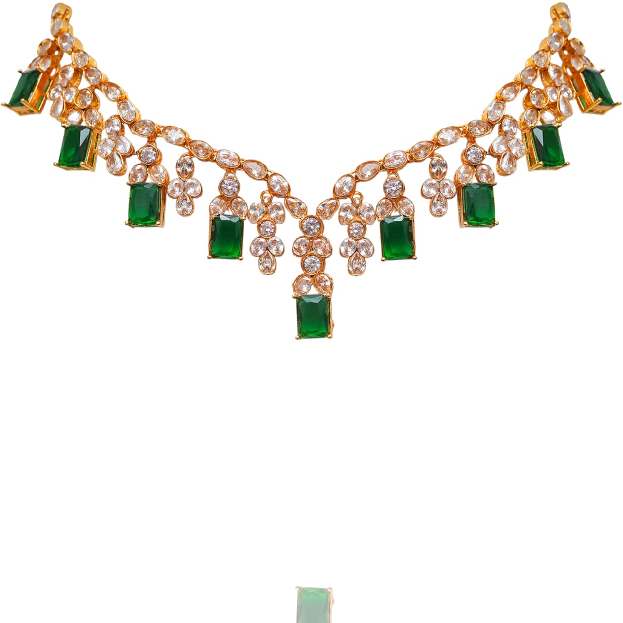 Radiant and refined, this exquisite set pairs deep emerald-green stones with brilliant CZ accents for a look of timeless regality.