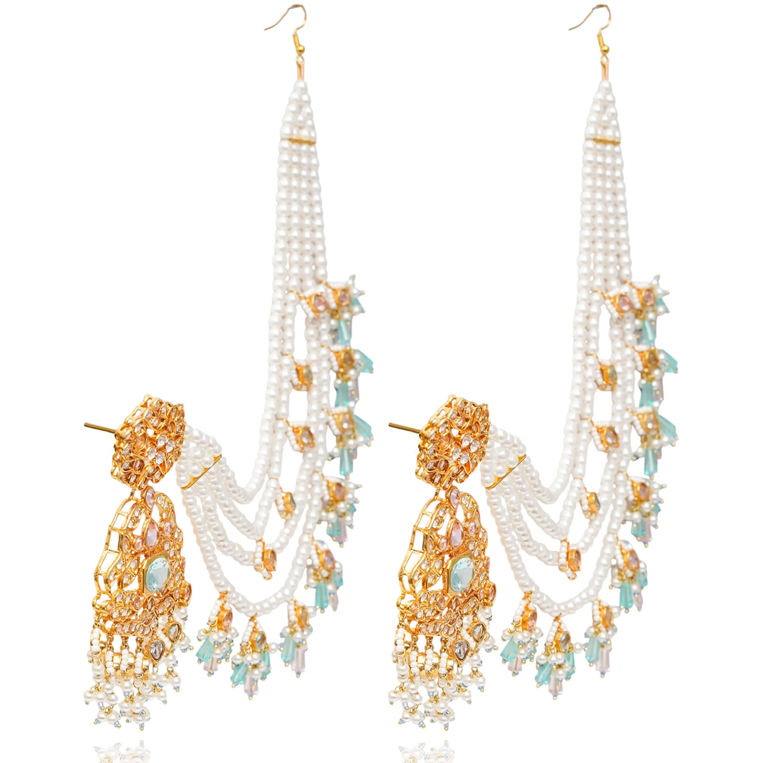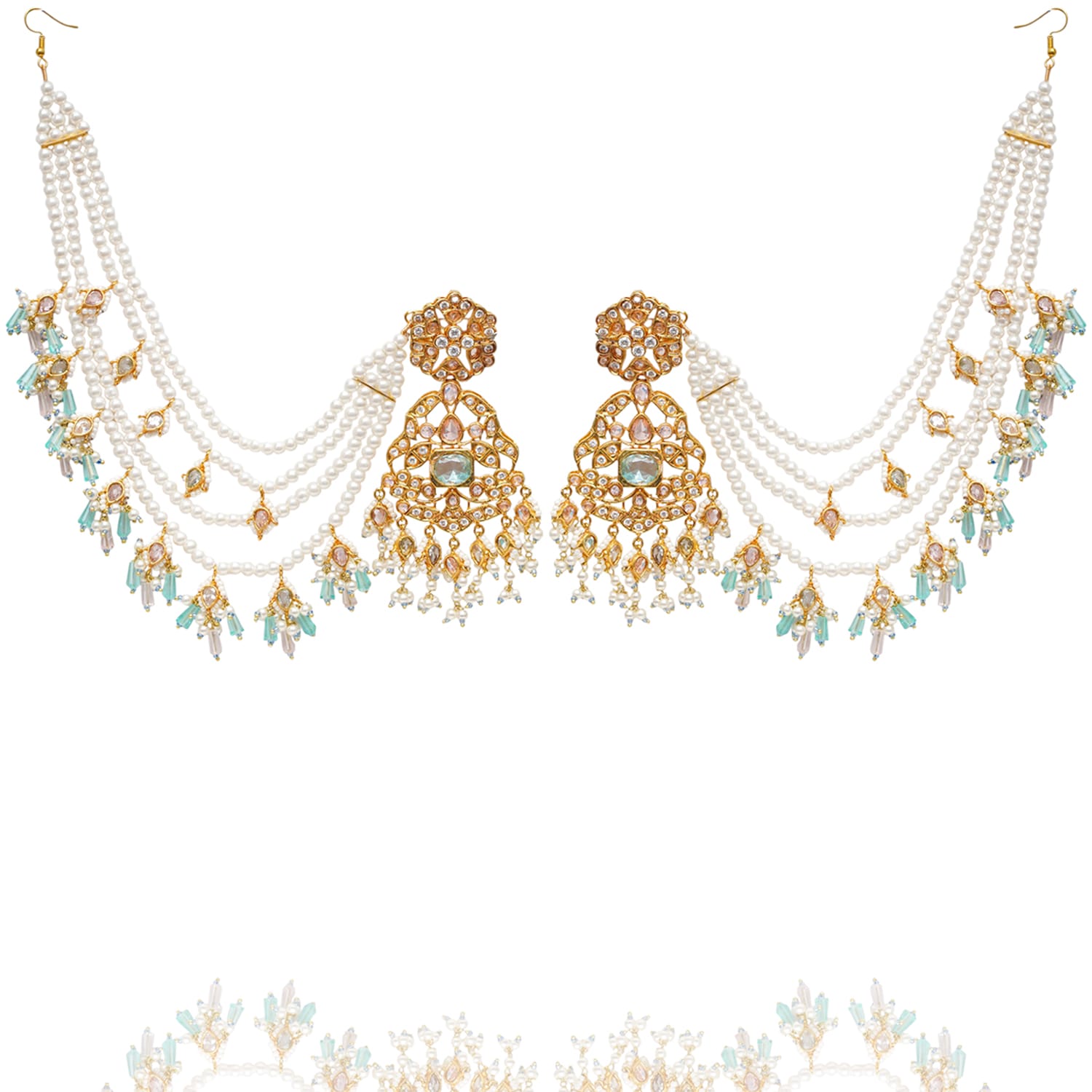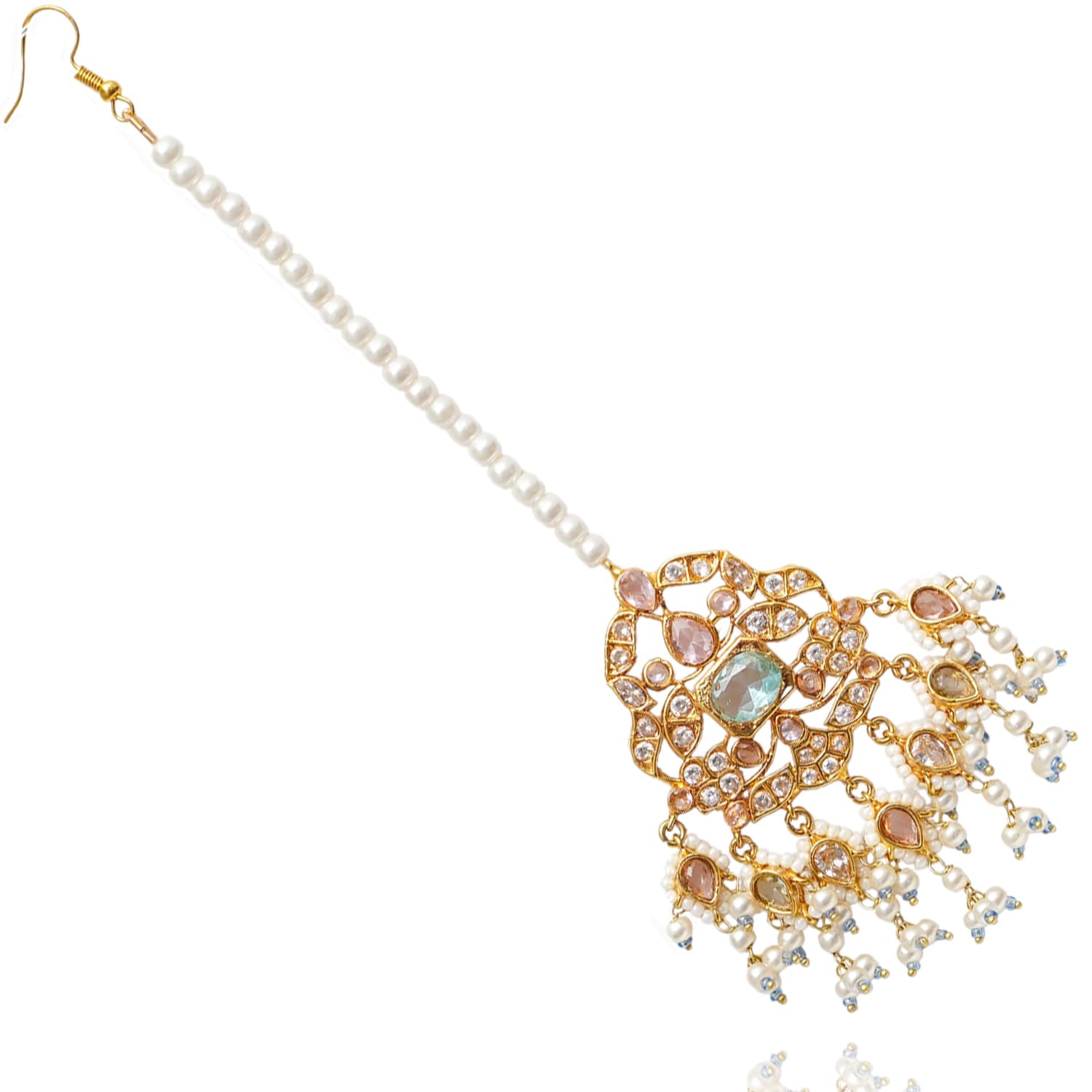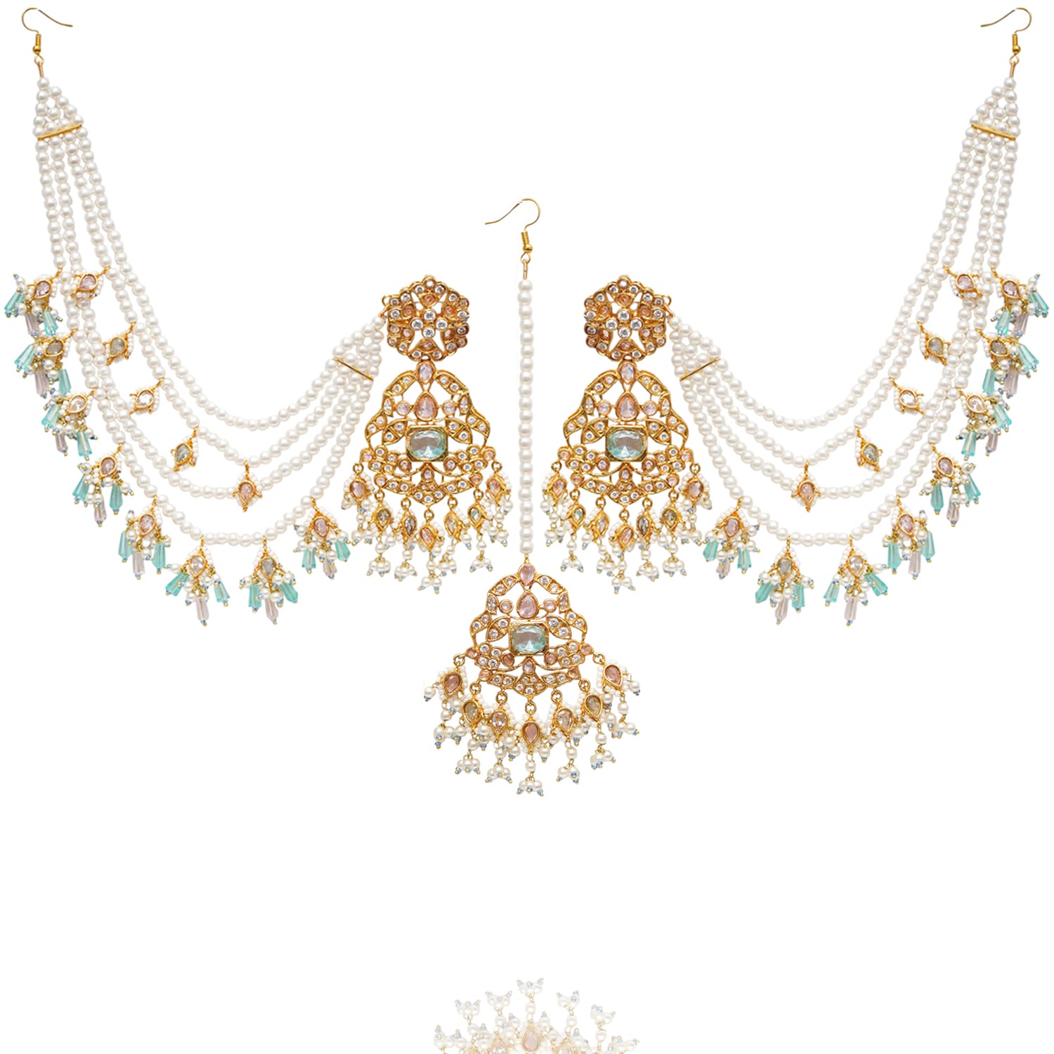 The set includes a necklace, a matching teekah and a pair of beautiful earrings with saharay. Approximate earrings length is 4".