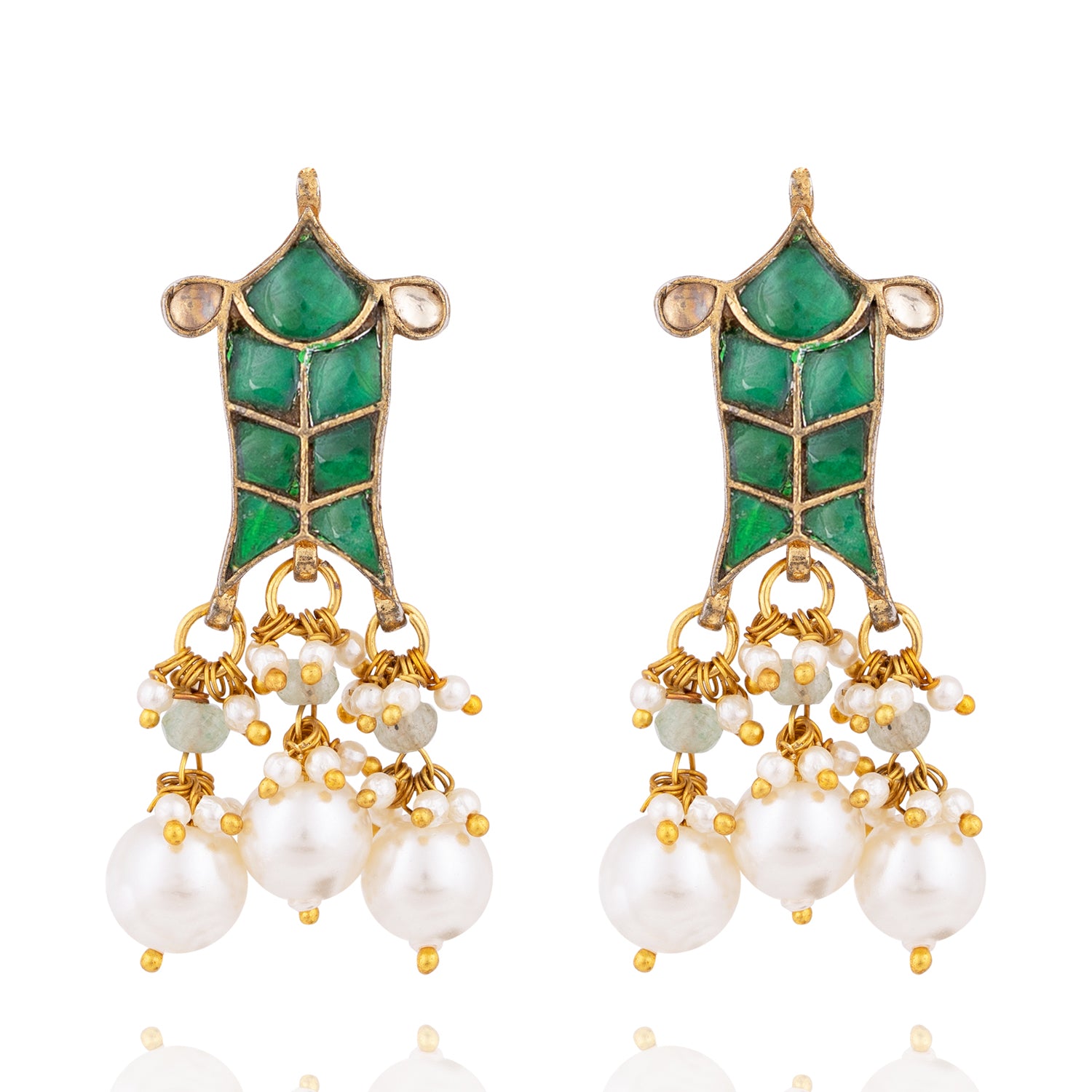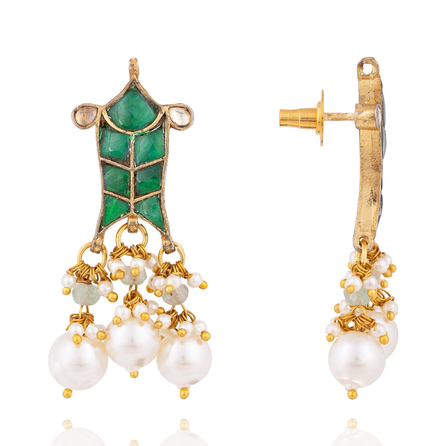 A unique jewelry set adorned with radiant green stones and lustrous pearls - a perfect balance of elegance and charm.