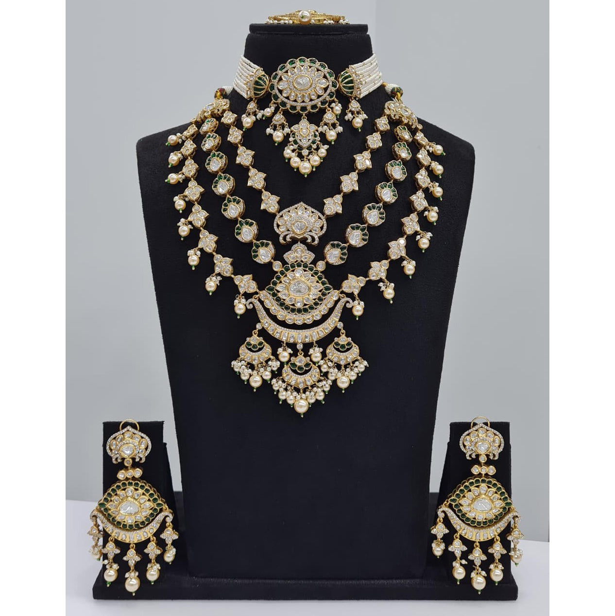 Adorned with intricate detailing, colored stones and cascading pearls, this bridal set evokes the splendor of royal courts - crafted for those who wear tradition with majestic grace.
