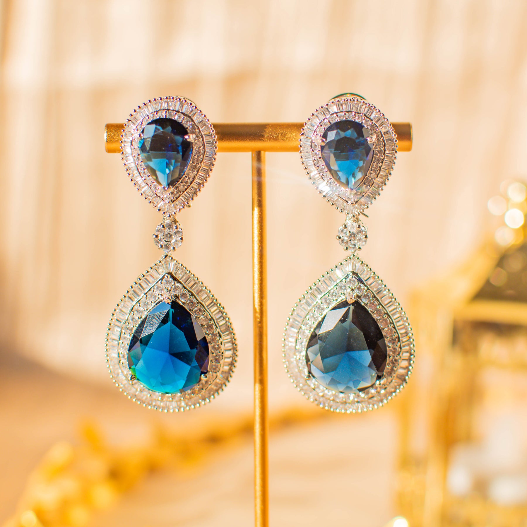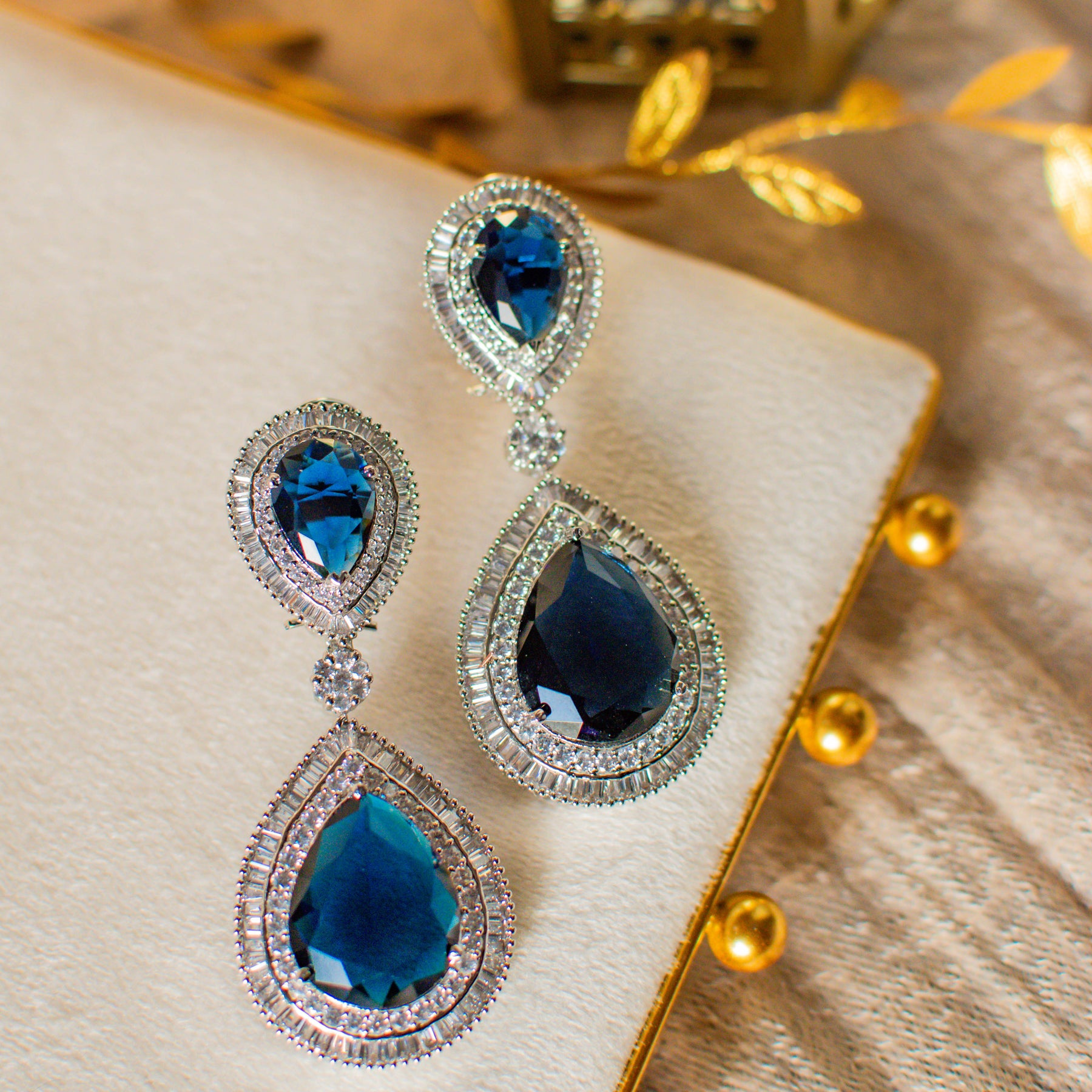 Delivery time frame for Anita Earrings (Sapphire) is 5-7 weeks. For custom or urgent requests, please contact support@alacouture.com.