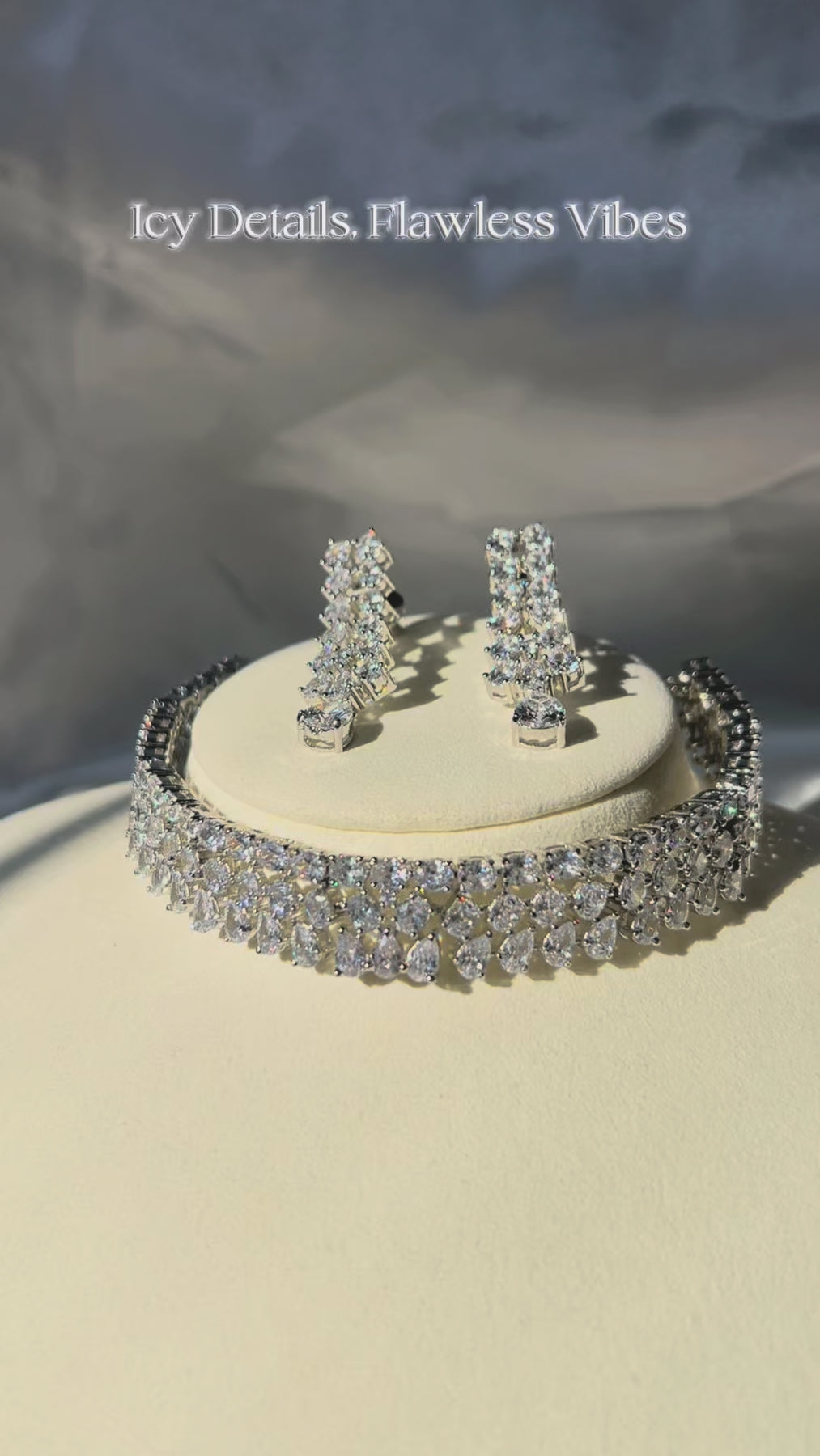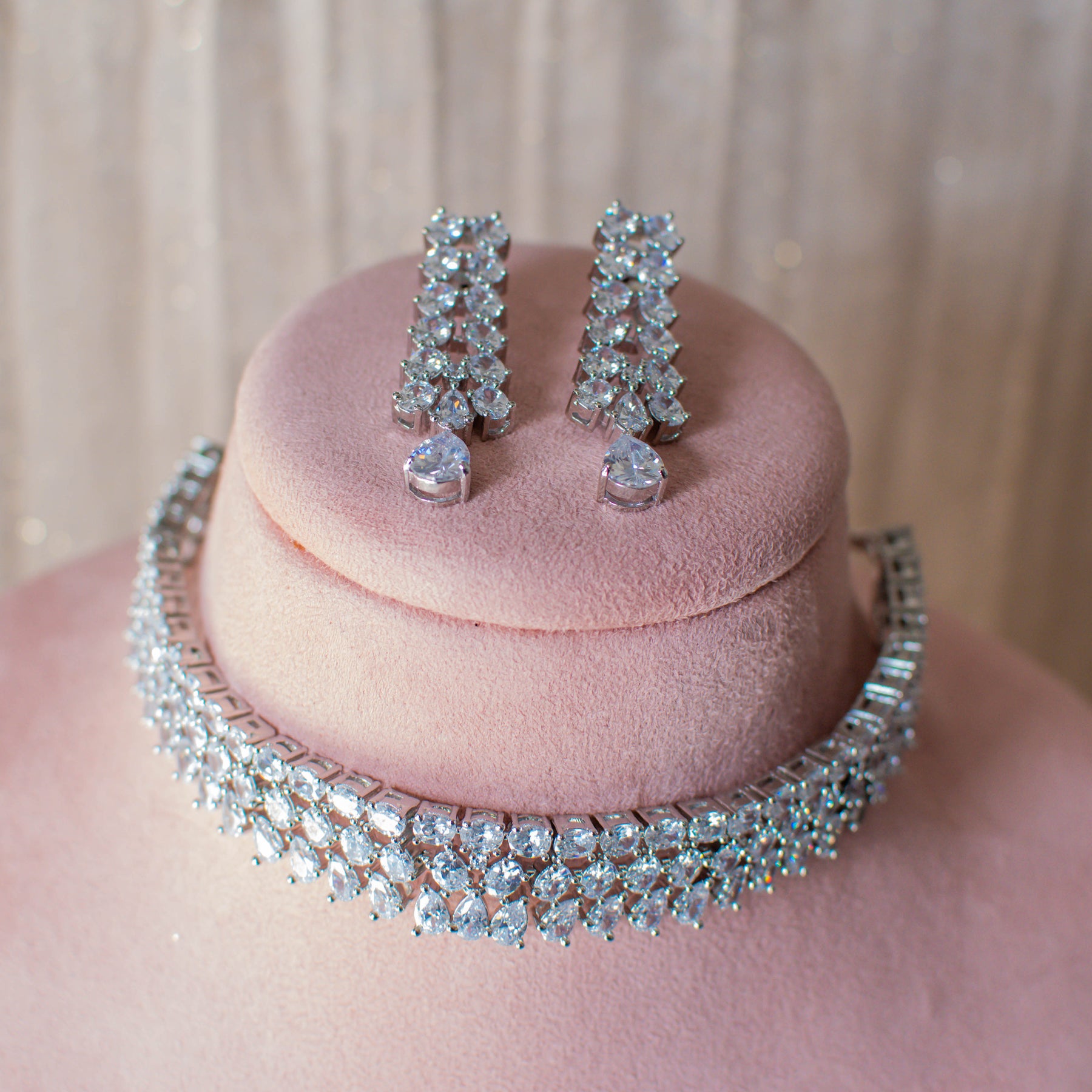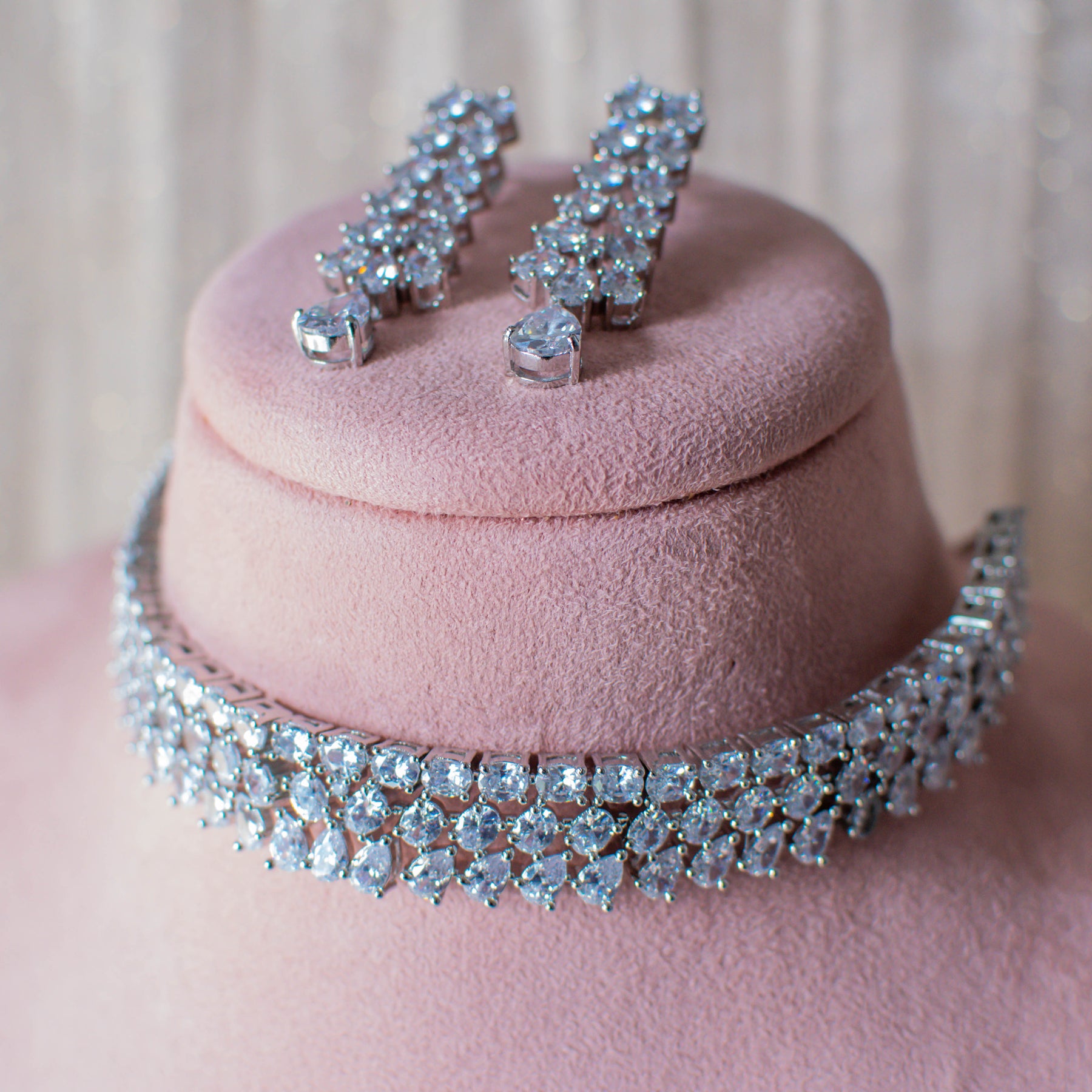 The set includes a choker and a pair of matching earrings. Approximate earrings length is 1.9".