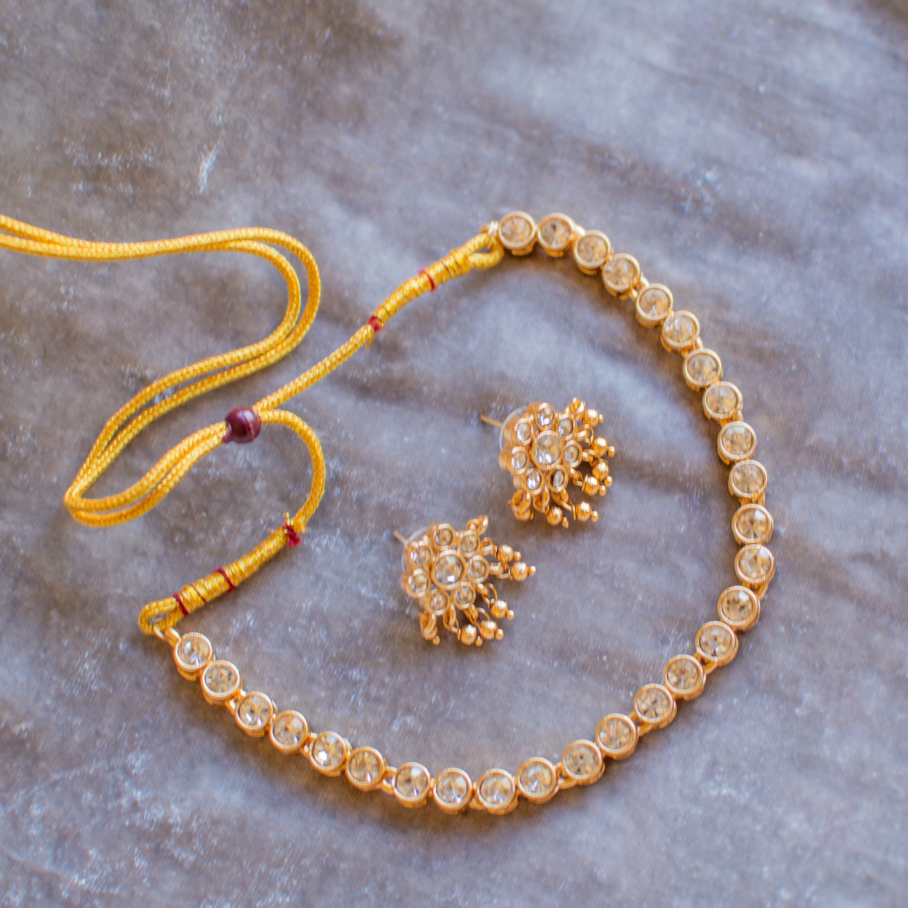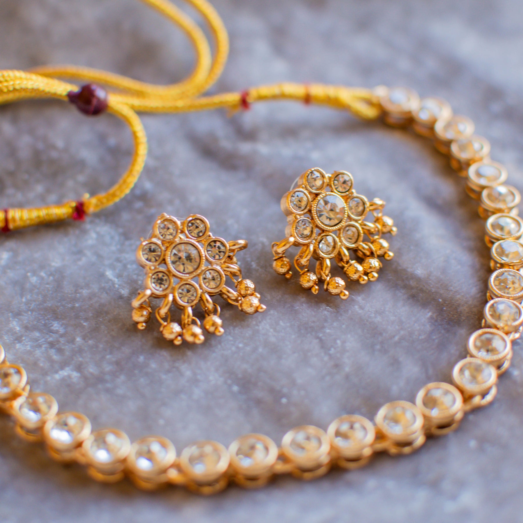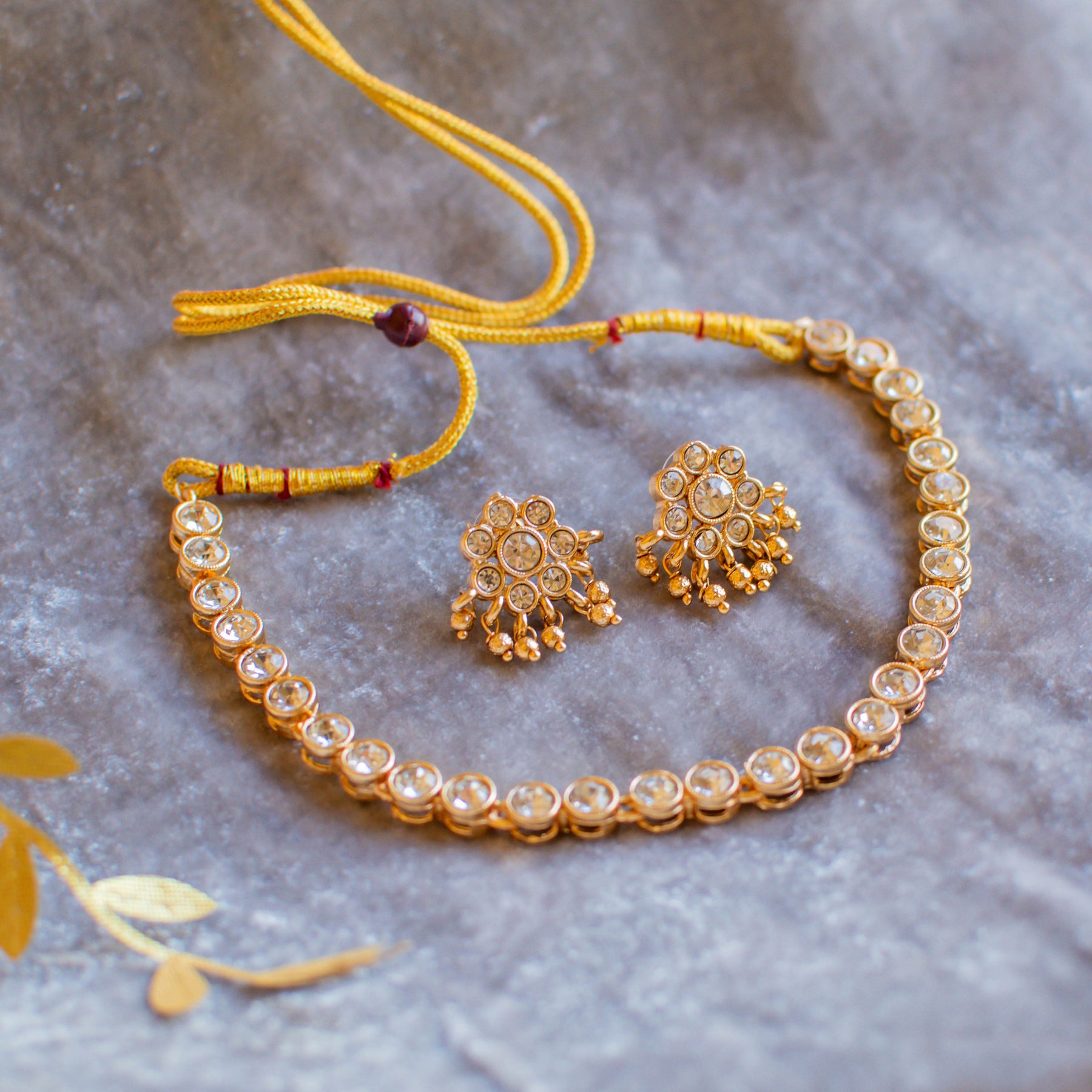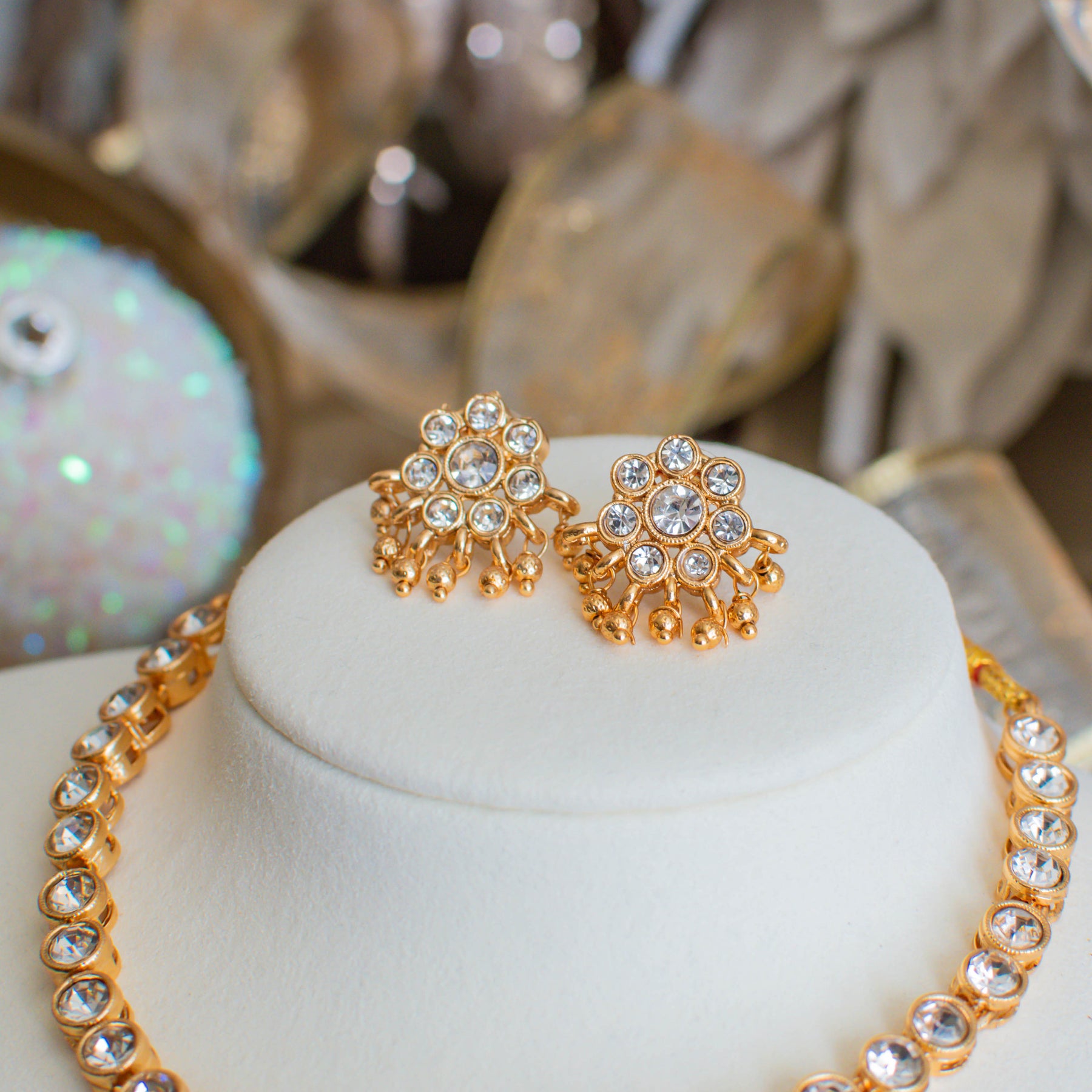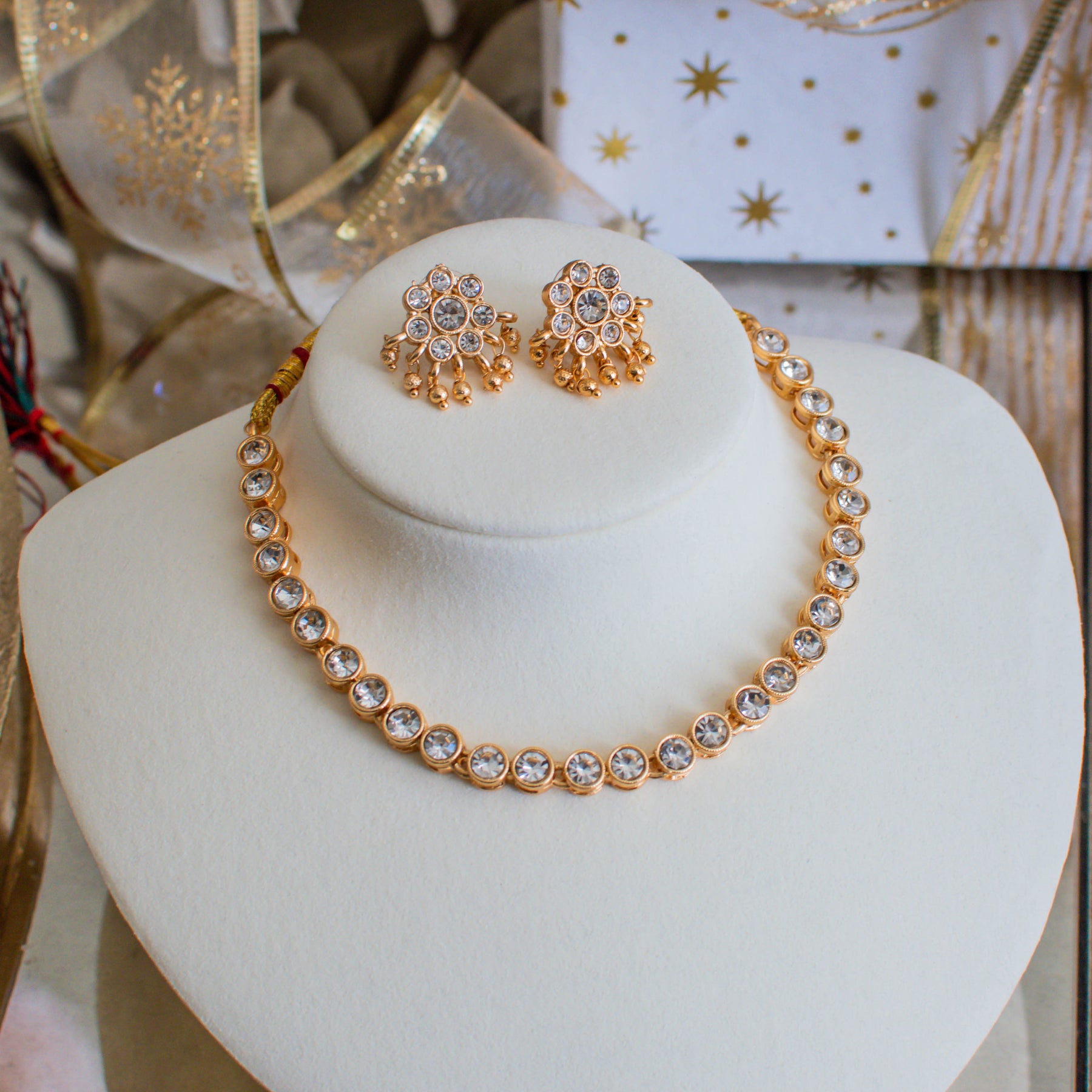 A timeless set adorned with exquisite stones, radiating classic elegance and refined charm.