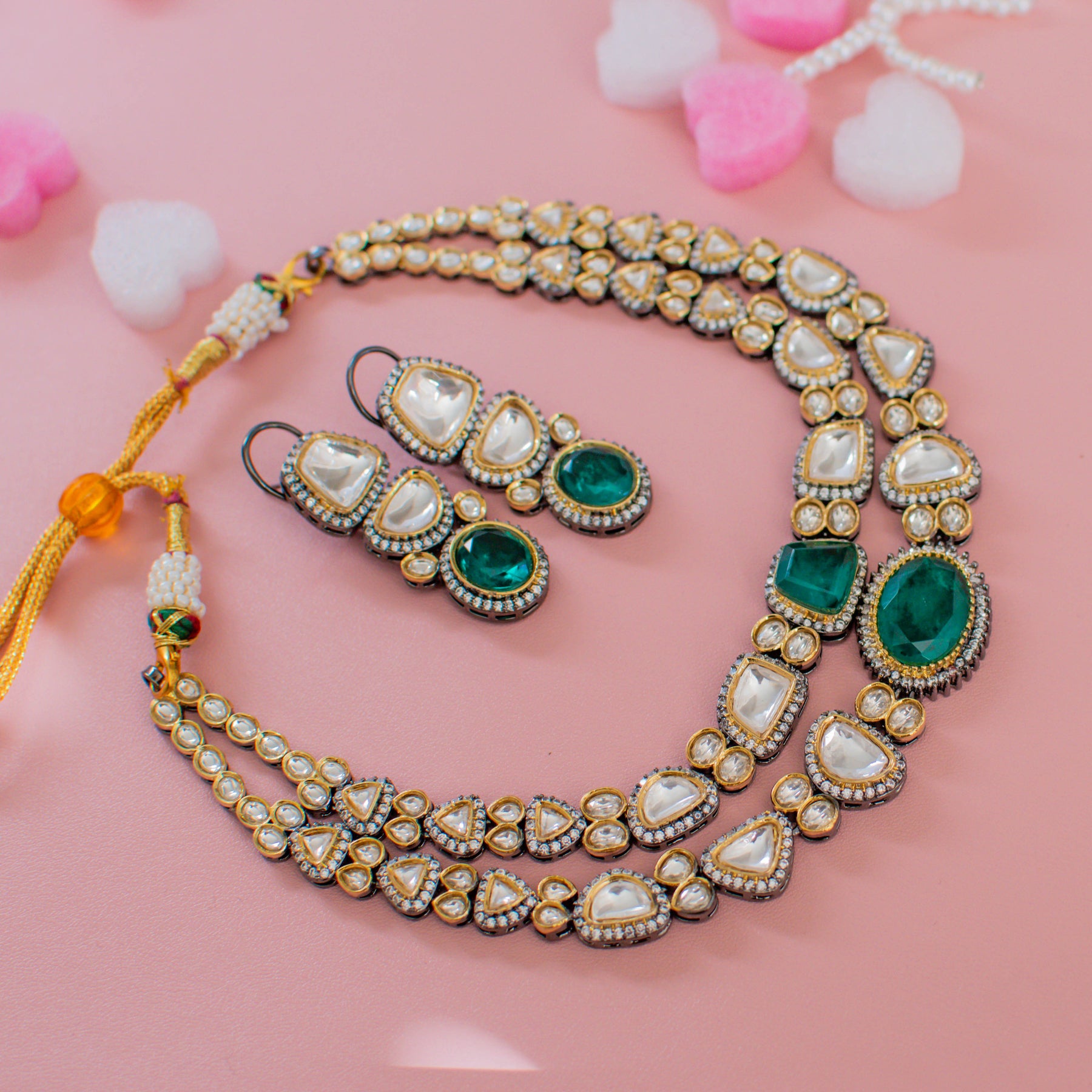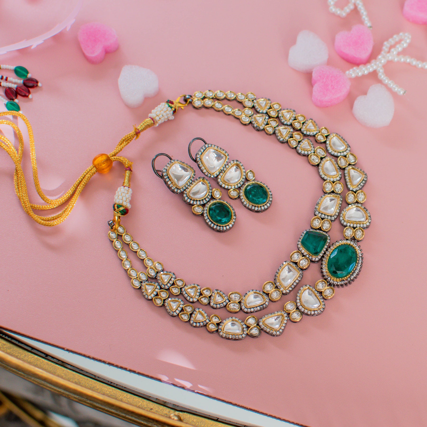 Delve into a charismatic fantasy with sophistication of kundan and emerald stones to achieve understated elegance.