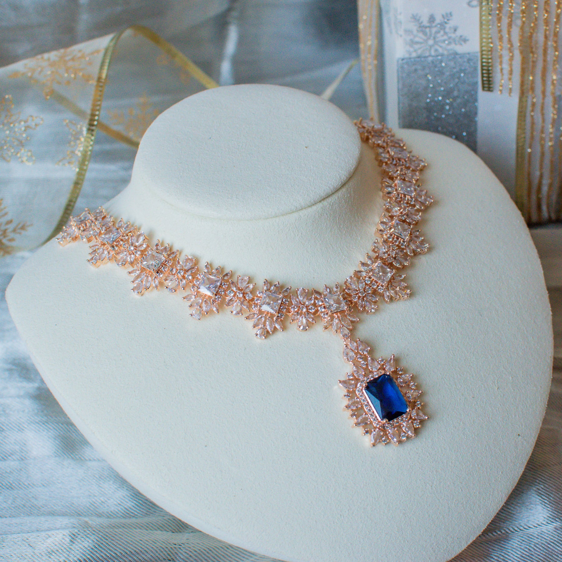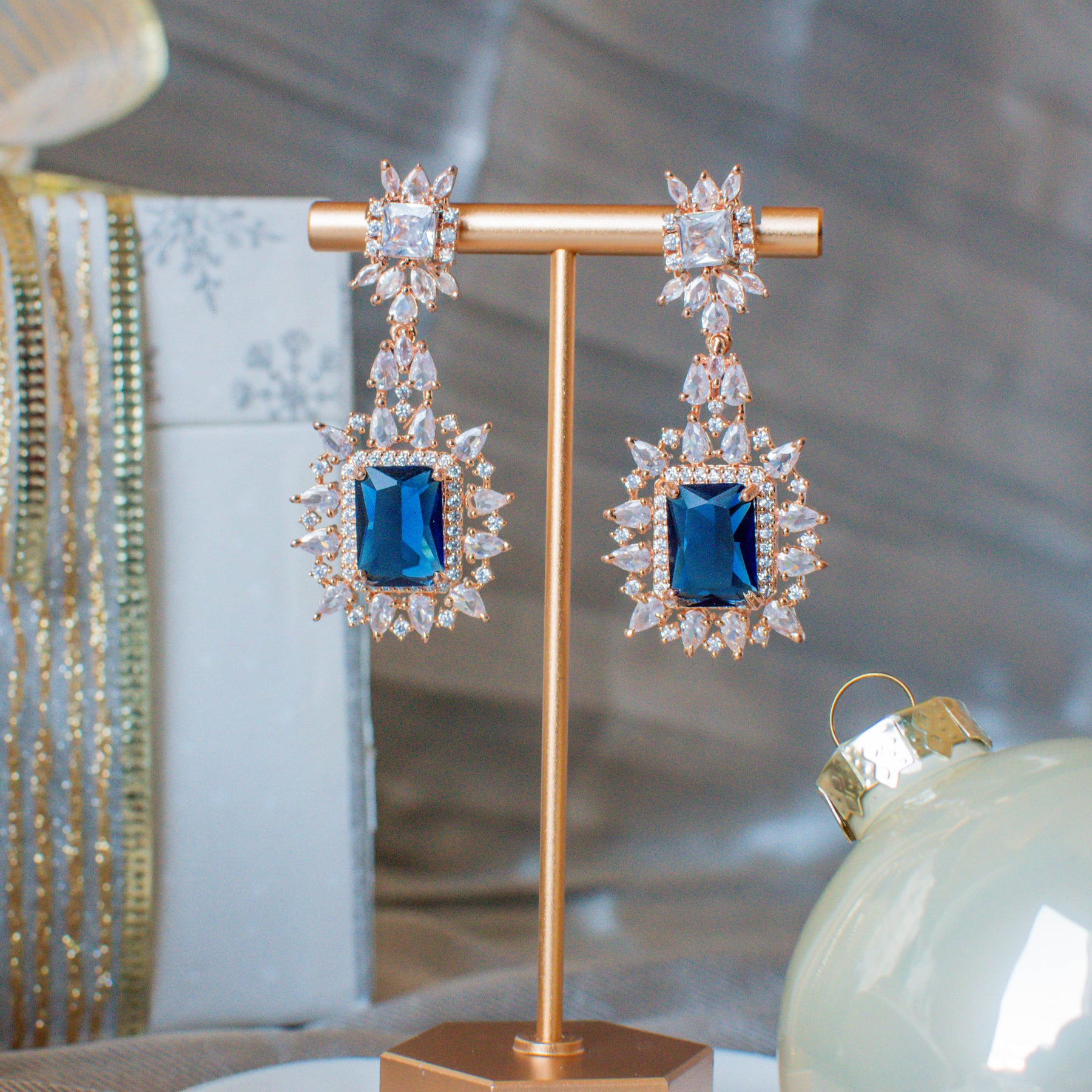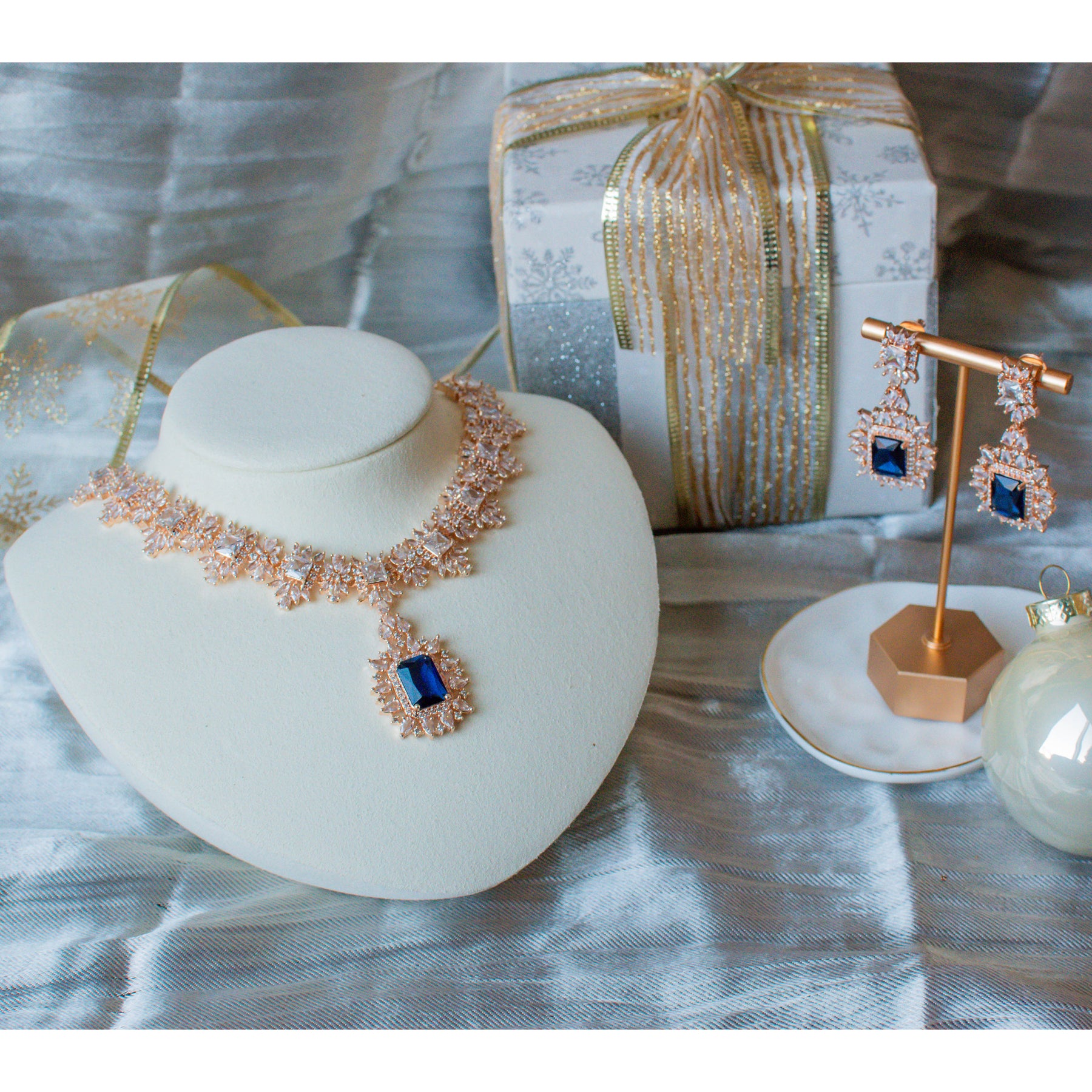 Elegant and shimmering set with CZ and sapphire stones creating a flawlessly fresh finish for each and every one of your evening ensembles.
