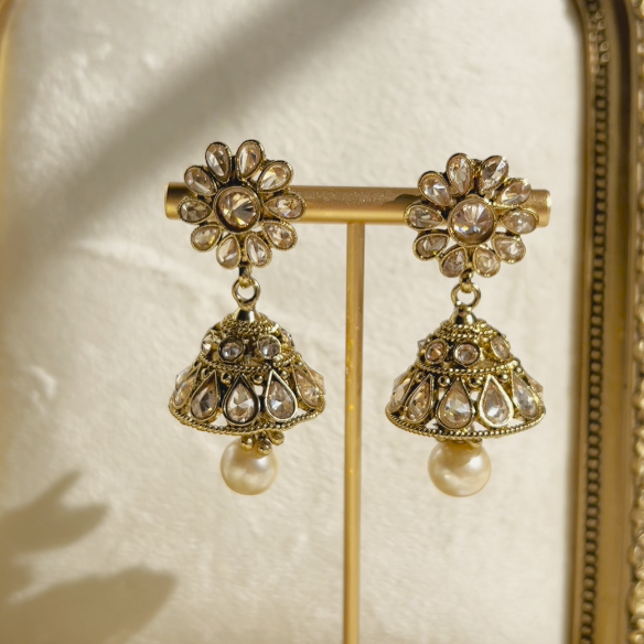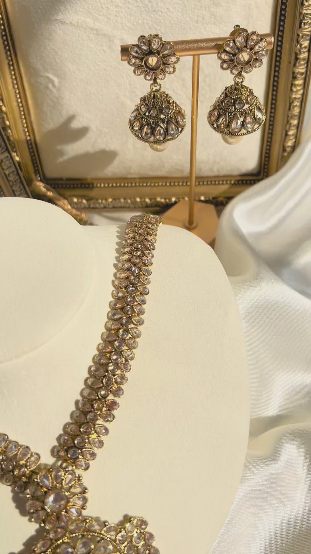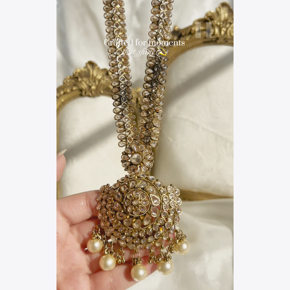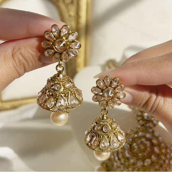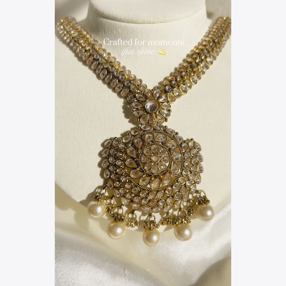 A stunning set beautifully hand embellished with champagne stones and pearl beads.