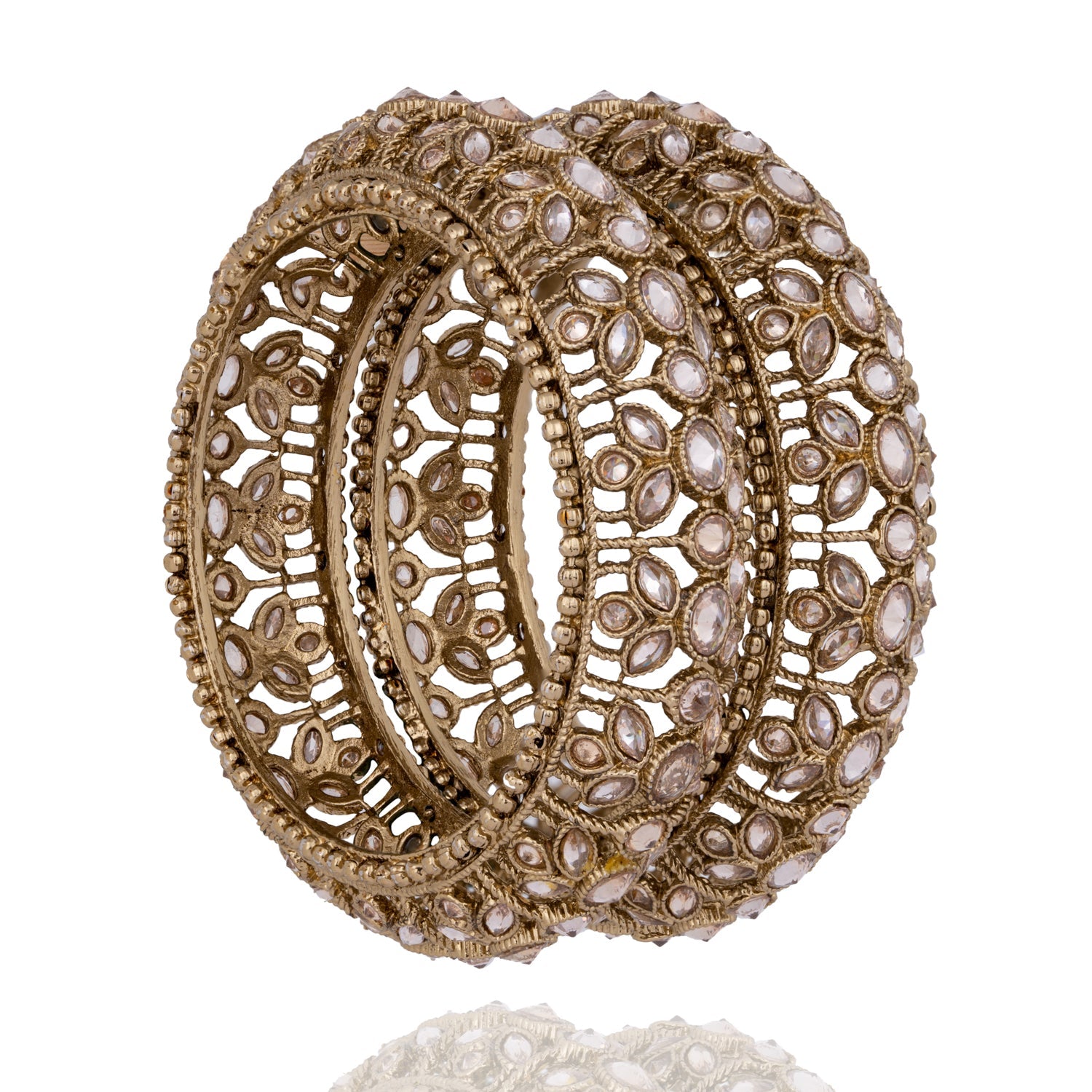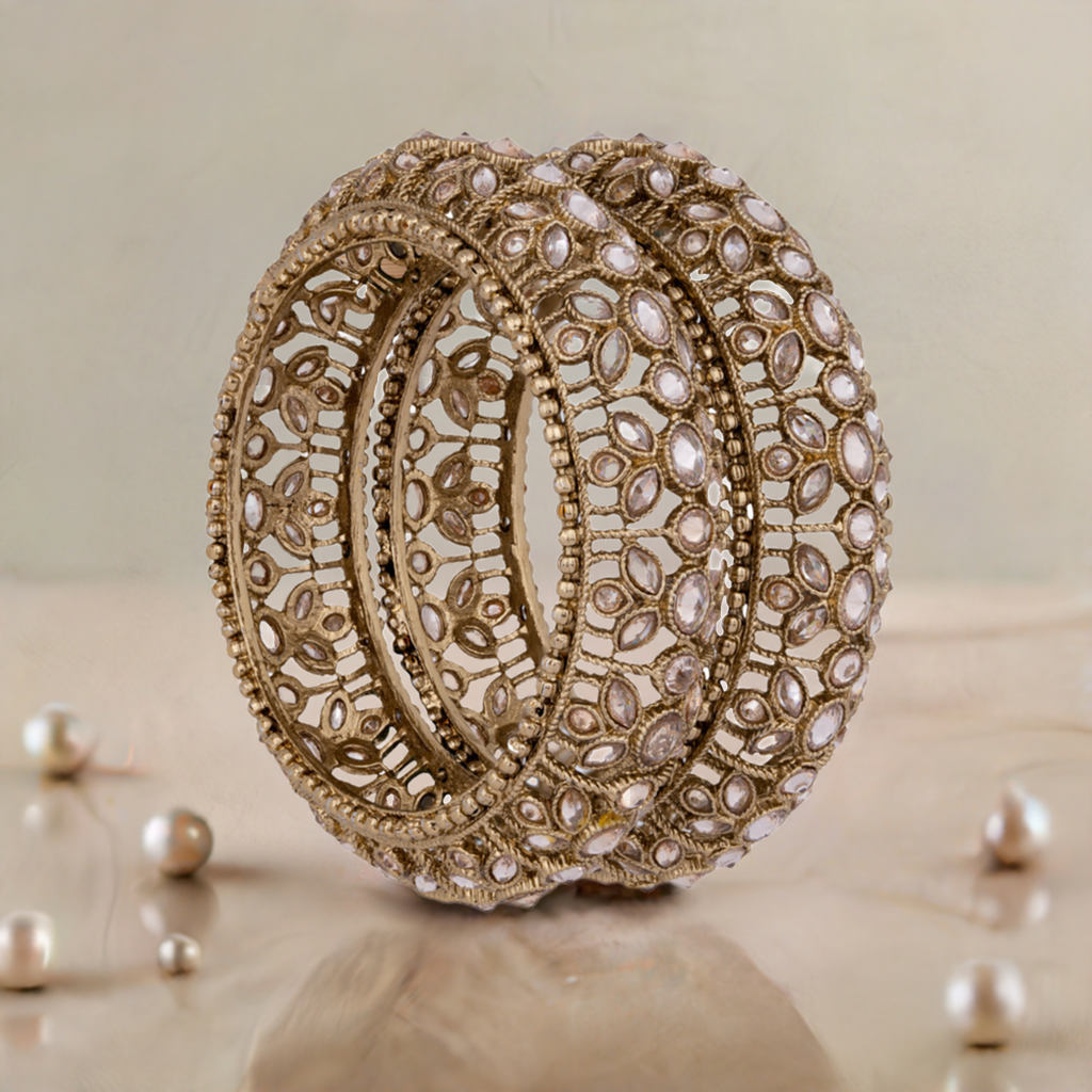 Add an exquisite touch to any look with the Zahra Bangles. Crafted from antique gold, these stunning bangles infuse opulence and timeless elegance into your outfit.