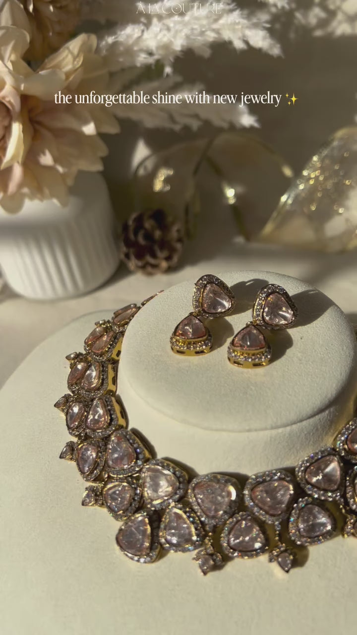 Radiate modern royalty with this breathtaking set, adorned with teardrop-cut stones that shimmer with every glance.