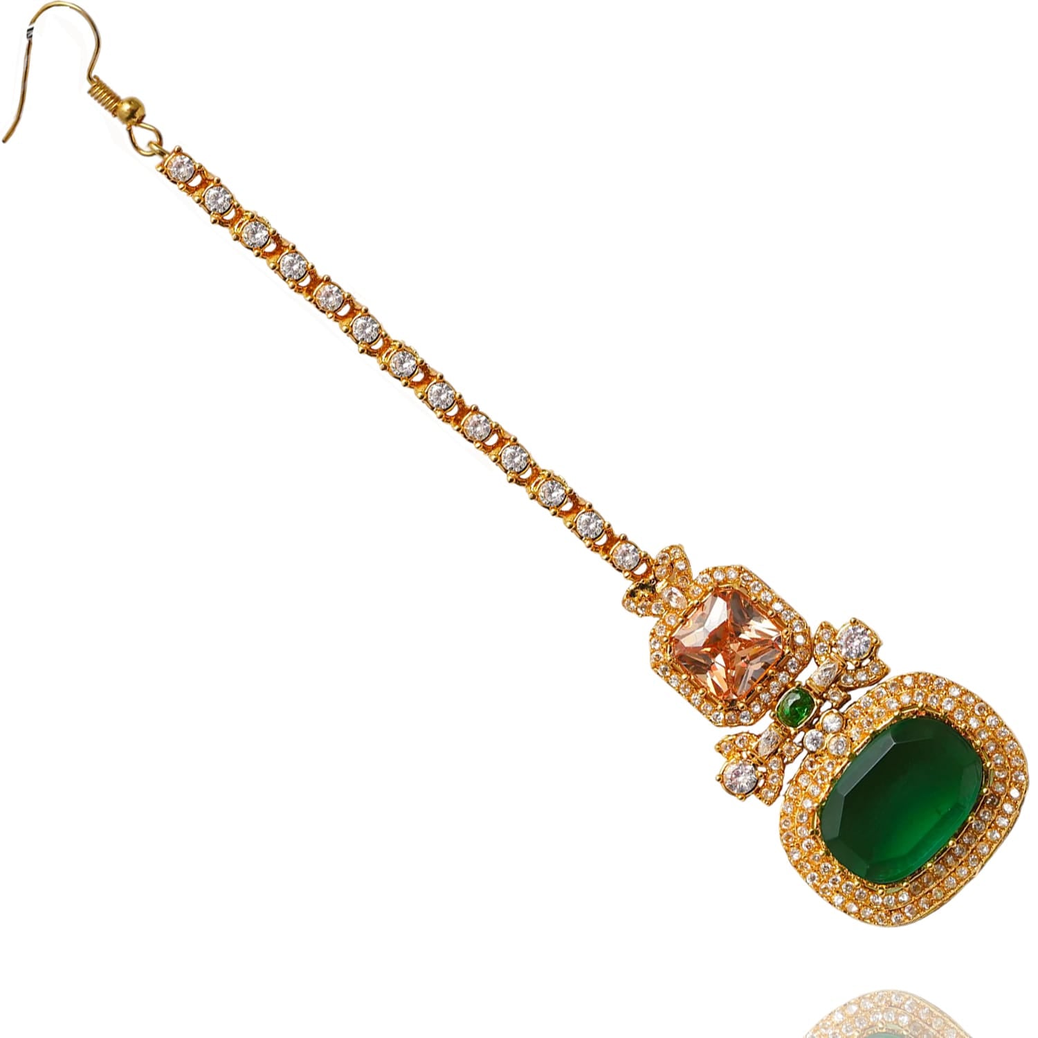 Bloom with brilliance in this regal set, adorned with lush emerald stones, sparkling accents and a bold ruby-red pop, adding a touch of uniqueness. Approximate earrings length is 2.3".