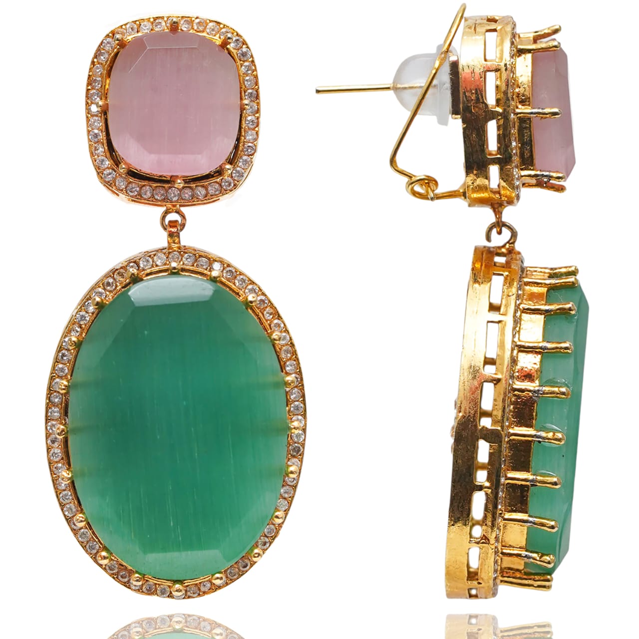 Drape yourself in royalty with this exquisite set, adorned with pastel stones in shades of mint, pink and soft green.