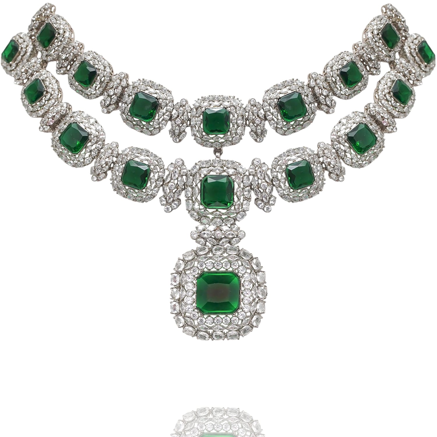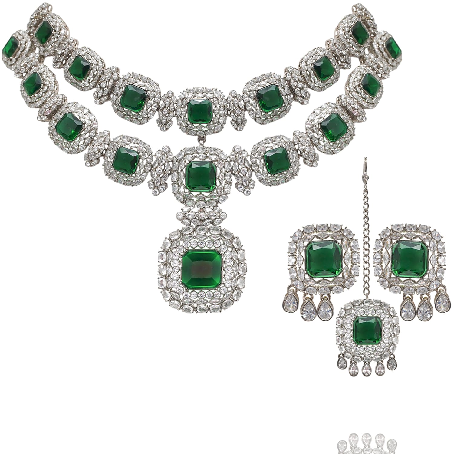 Introducing our exquisite CZ-studded bridal jewelry set echoing the grace and charm of timeless allure of our meticulously designed ensemble.