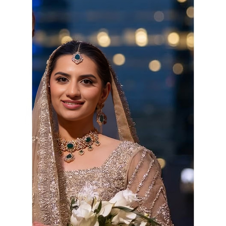 The look includes a necklace, a matching maang teekah and a pair of beautiful earrings featuring vibrant emerald stones and intricate CZ detailing. Approximate earrings length is 2.3 inches.