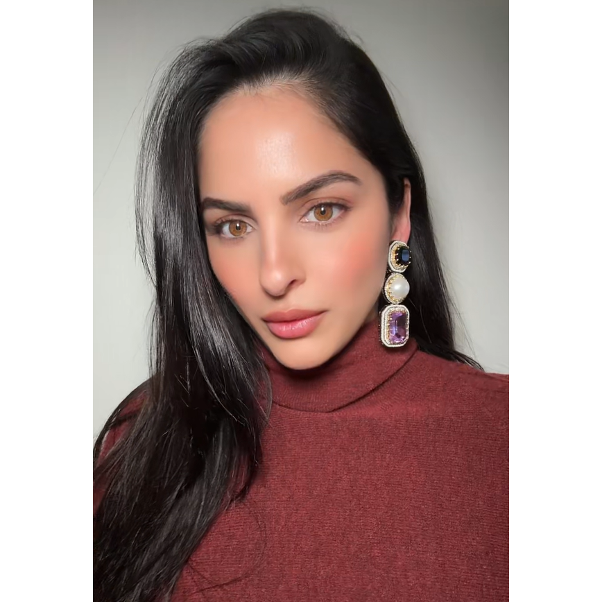The look includes a gorgeous pair of earrings luxuriously studded with amethyst, pearl and CZ stones - perfect to wear them in your favorite fancy events to make all eyes rest on you. Approximate earrings length is 3.2".