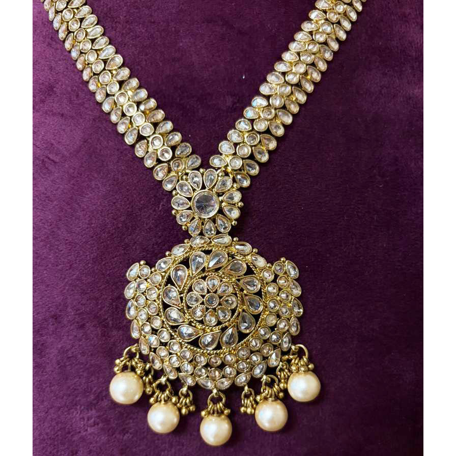 A stunning set beautifully hand embellished with champagne stones and pearl beads.